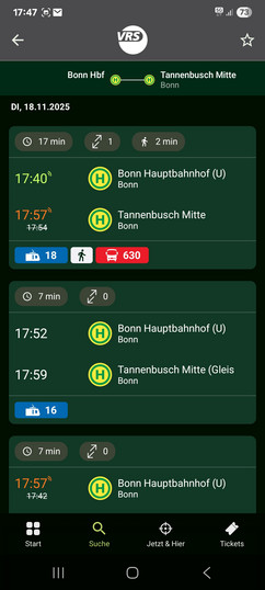 | Tannenbusch | Bonn | Fr. 22.11. | 10:19 | 10:20 |
