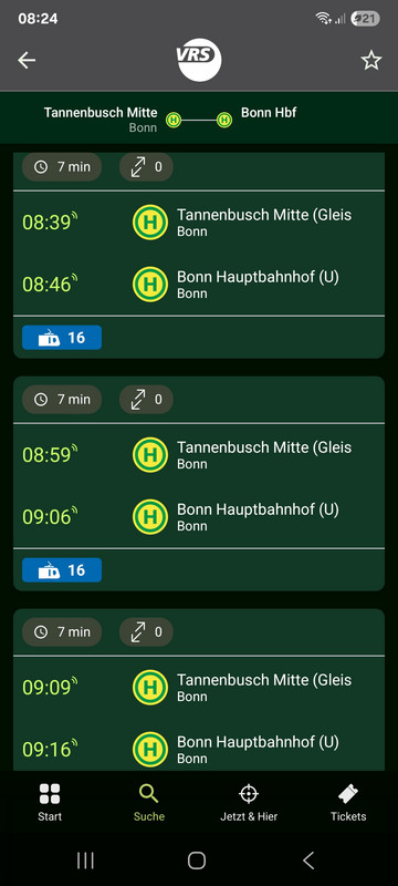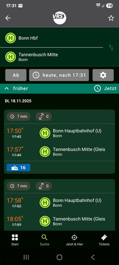 | Tannenbusch | Bonn | Mi. 4.12. | 8:49 | 8:56 |