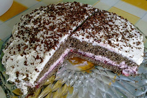 Die Eiweisse steif schlagen und vorsichtig unterrühren. In die Springform geben und 20-30 Min. backen. Kühlen lassen.