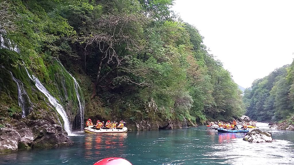 Die Rafting-Tour dauerte über 3 Stunden. Wie sie war? Nun, die Landschaft war schön, aber nicht so spektakulär wie erwartet. Schließlich geht es hier um den Durmitor! Na gut, die Tour läuft aber außerhalb des Nationalparks. Man machte ein paar Pausen. U.a. bei einem Wasserfall. Während der Rafting-Tour wurde man durchaus auch nass, da es auch einige Stromschnellen gab, aber richtig gefährlich wurde es nie.