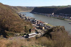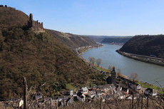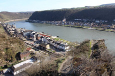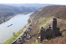 Als nächstes folgt eine Abzweigung zu einem Bergwerk. Da man nicht rein kann, sollte man auf den Abstecher wohl verzichten. Erst ab Wellmich kommen dann zahlreiche schöne Aussichtspunkte, die allerdings meistens nicht direkt auf dem Rheinsteig liegen. Also immer schön die Augen offen halten! Burg Maus sieht von außen durchaus hübsch aus, rein kann man aber nicht. Dahinter kann man dann schon mal einen Blick auf die berühmte Loreley ergattern.