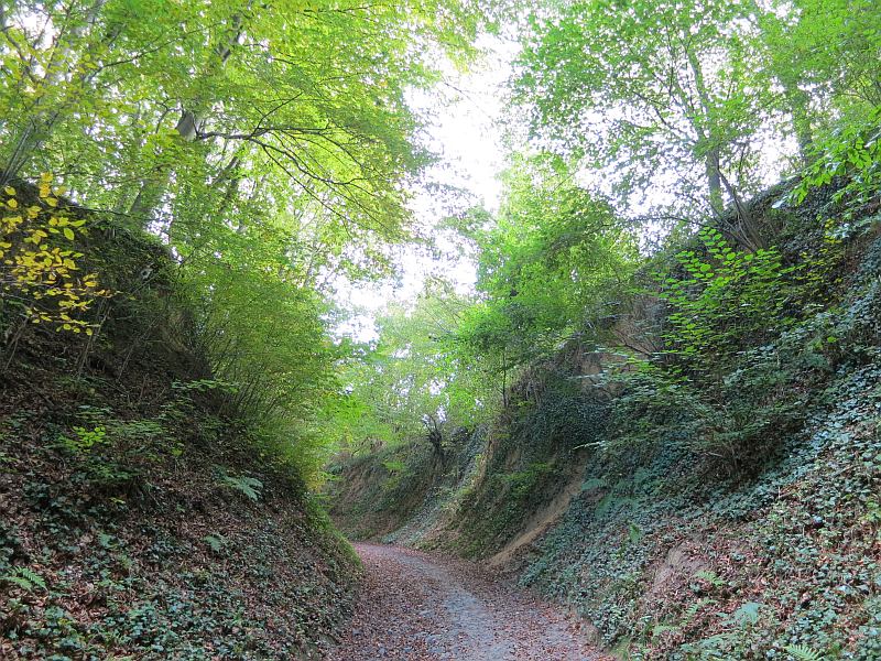 Vom Bahnhof Bad Hönningen findet man nur schwer bis zum Römerwelt-Museum (Limes-Erlebnis-Zentrum), dem Startpunkt des Westerwaldsteigs. Ich verlief mich dabei. Der Rest des Weges ist aber vorbildlich ausgeschildert, sodass man keine Wanderkarte braucht. Lediglich auf dem Malberg übersah ich eine Abzweigung, was ich aber schnell an der fehlenden Markierung merkte. Vom Bahnhof bis nach Waldbreitbach sind es jedenfalls knappe 15 km. Dafür brauchte ich bergauf ohne größere Pausen 4:15 Stunden.